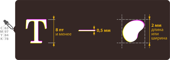 - 2.8. Самый светлый участок заливки либо плашки должен быть не менее 2С 2M 2Y 0K.