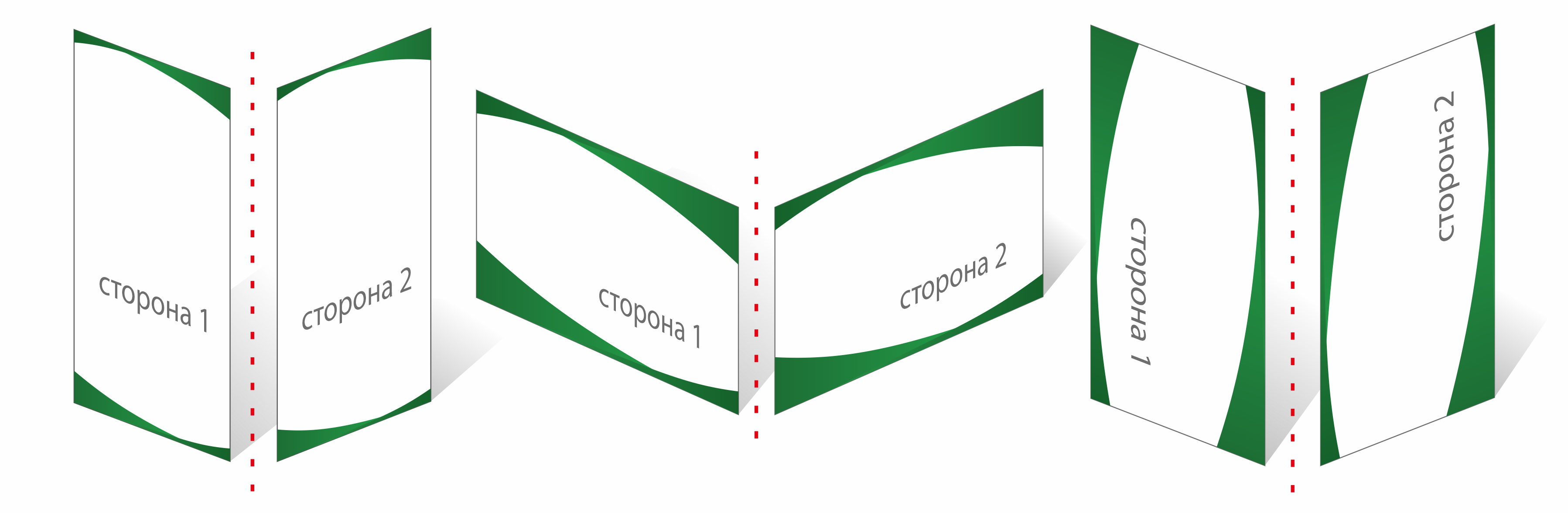 При создании макетов двусторонней продукции учитывайте ориентацию макета лицевой стороны относительно макета